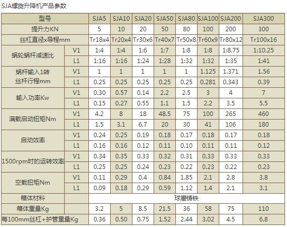 工作制为10分钟内工作时间的百分比 SJA系列普通齿螺旋升降机的工作制为30% 滚珠丝杠螺旋升降机的工作制为50% 当实际负载小于额定负载时 SJA50螺旋升降机,可以适当提高工作制 SJA100螺旋升降机。