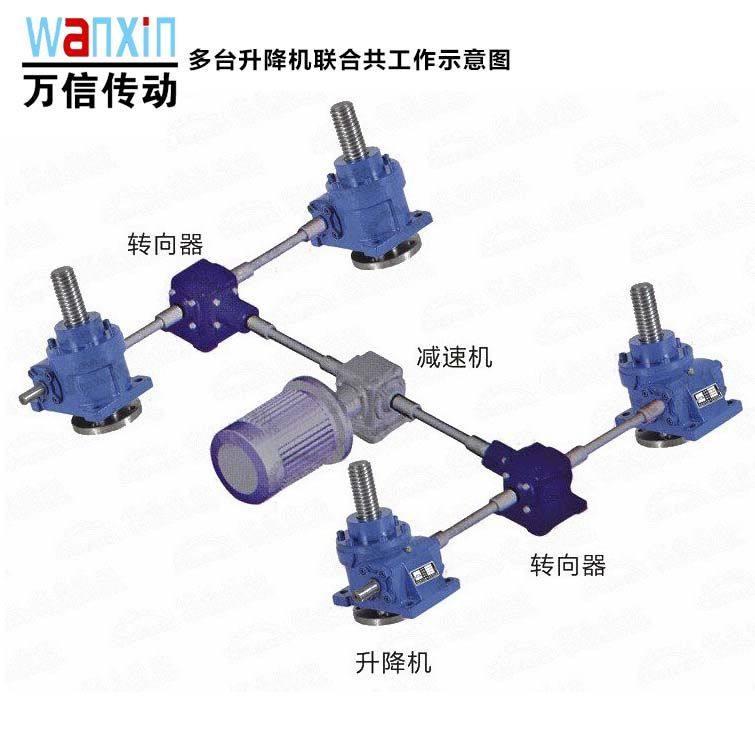 SWL1T蜗轮丝杆升降机是一种微型的丝杆升降机,丝杆升降机在运行一段时间后,齿轮油温度升高又冷却后产生的凝结水与油混合。当然,也与轴承质量及装配工艺密切相关。可购买或自制一些专用工具,拆卸和安装蜗轮丝杆升降机部件时,尽量避免用锤子等其他工具敲击,更换齿轮、蜗轮蜗杆时,尽量选用原厂配件和成对更换,装配输出轴时,要注意公差配合,要使用防粘剂或红丹油保护空心轴,防止磨损生锈或配合面积垢,维修时难拆卸。了解蜗轮升降机的承载及转速问题,丝杆提升机作为一种起重(推拉)设备其采用蜗轮蜗杆配合丝杠传动,从结构上看具体体积小、重量轻的特点。丝杆升降机根据其蜗轮蜗杆及各个部件的强度计算得出某种型号蜗轮升降机的较大承载能力及允许较大功率。在选择小型丝杆升降机时必须要注意无论在静态承载或者动态承载以及冲击方面都不能超出丝杆升降机的较大承受能力,否则可能造成微型升降机各个部件的严重损坏或者造成更大损失。一般蜗轮蜗杆传动所允许的较高输入转速为1500转/分钟,所以在使用螺旋升降机时其蜗杆输入转速不得超过此转速,也就是较大可配普通4电机。螺旋升降机使用时机体表面温度允许控制在-15°到80°,超出或者低于此温度区间要对升降机采取控温措施。