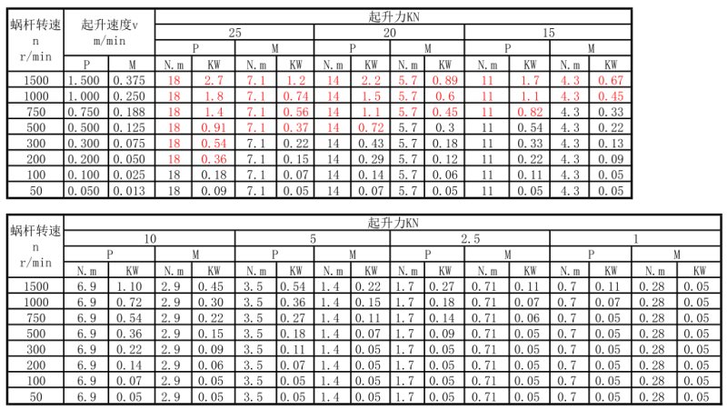 SWL丝杆升降机(蜗轮升降机)起升力: